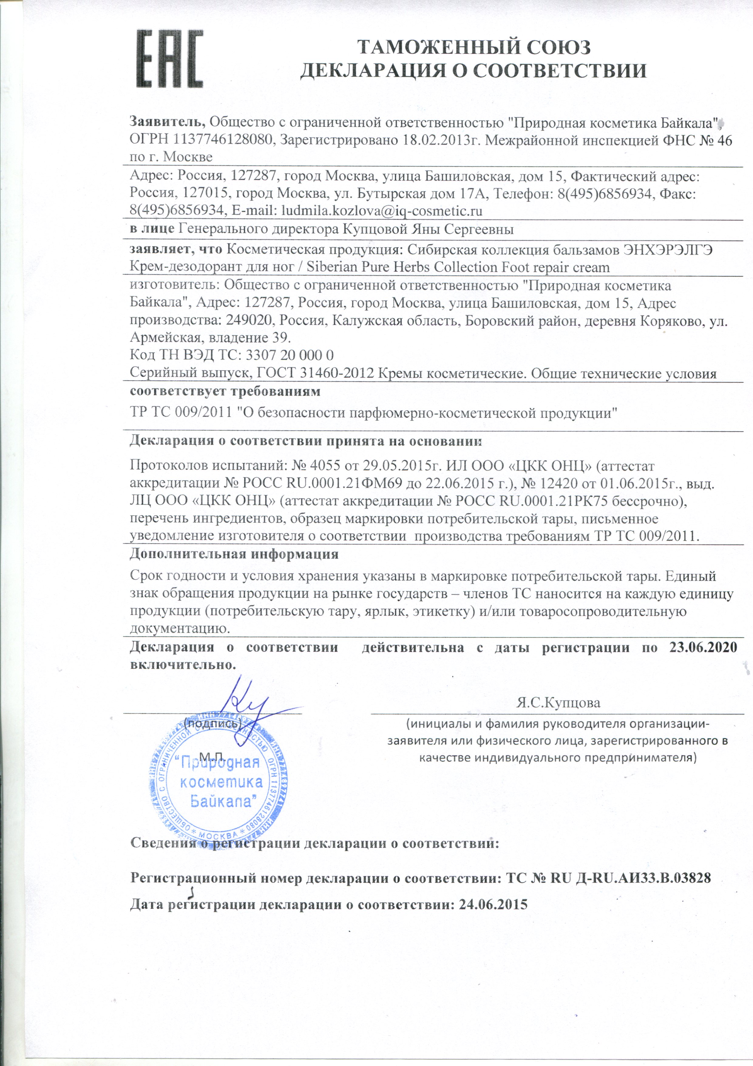 Состав (INCI): aqua (water), glycerin, tapioca starch, hydrogenated ethylhexyl olivate, undecylenamidopropyltrimonium methosulfate, cetearyl alcohol, glyceryl stearate, palmitic acid, stearic acid, camelina sativa (camelina) seed oil, coco-caprylate/caprate, propanediol, polymethylsilsesquioxane, hydrogenated olive oil unsaponifiables, carbomer, betaine, ethylhexylglycerin, o-cymen-5-ol, picea abies (spruce) needle oil, juniperus communis wood oil, thuja occidentalis (thuja) leaf oil, melaleuca alternifolia (tea tree) leaf oil, eucalyptus globulus (eucalyptus) leaf oil, комплекс растительных экстрактов ENDEMIX™ (rhododendron adamsii extract, eleutherococcus senticosus (eleuthero) root extract, rhaponticum carthamoides (maral root) root extract, rhodiola quadrifida extract, scutellaria baicalensis extract), sodium hydroxide, leptospermum scoparium (manuka) oil, octenidine hcl, acorus calamus (sweet flag) root extract, althaea officinalis (marshmallow) root extract, quercus robur (oak) bark extract, sodium usnate, sodium benzoate, potassium sorbate.